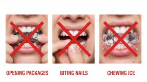 Opening packages, biting your nails, or chewing ice are habits that put your teeth at risk. Your teeth are not meant for these tasks, and doing them regularly can increase your emergency risk.